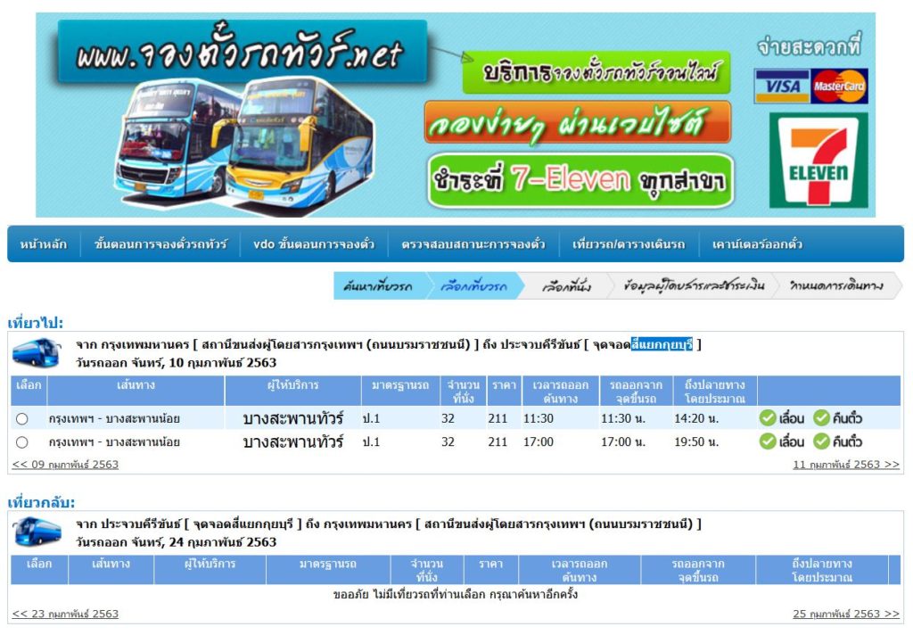 ทางแอดมินได้ลองเช็คตั๋ว ราคาตั๋ว ตารางเดินรถ เวลารถออก คร่าวๆ จากระบบออนไลน์ เส้นทาง กรุงเทพ – กุยบุรีแสดงข้อมูลดังนี้ …. ค้นเมื่อ 10 ก.พ. 63